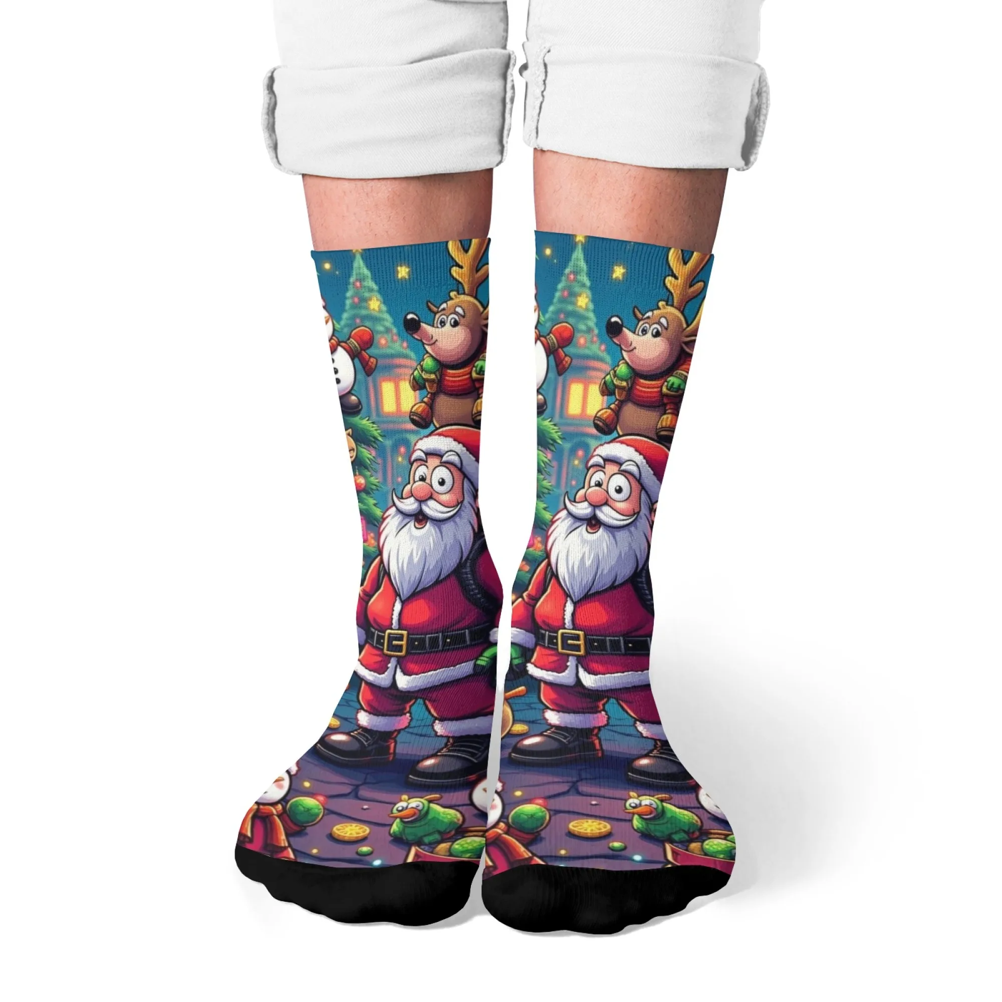 Ces Chaussettes amusantes sur le thème de Noël se distinguent par leurs motifs festifs et colorés, allant des rennes et sapins aux motifs rigolos et emblématiques de la saison. Chaque paire est pensée pour créer un style décontracté tout en affichant votre bonne humeur et votre esprit festif. Que ce soit pour compléter votre tenue de fête ou simplement apporter de la fantaisie à votre quotidien, elles sont une excellente manière de célébrer Noël avec originalité.